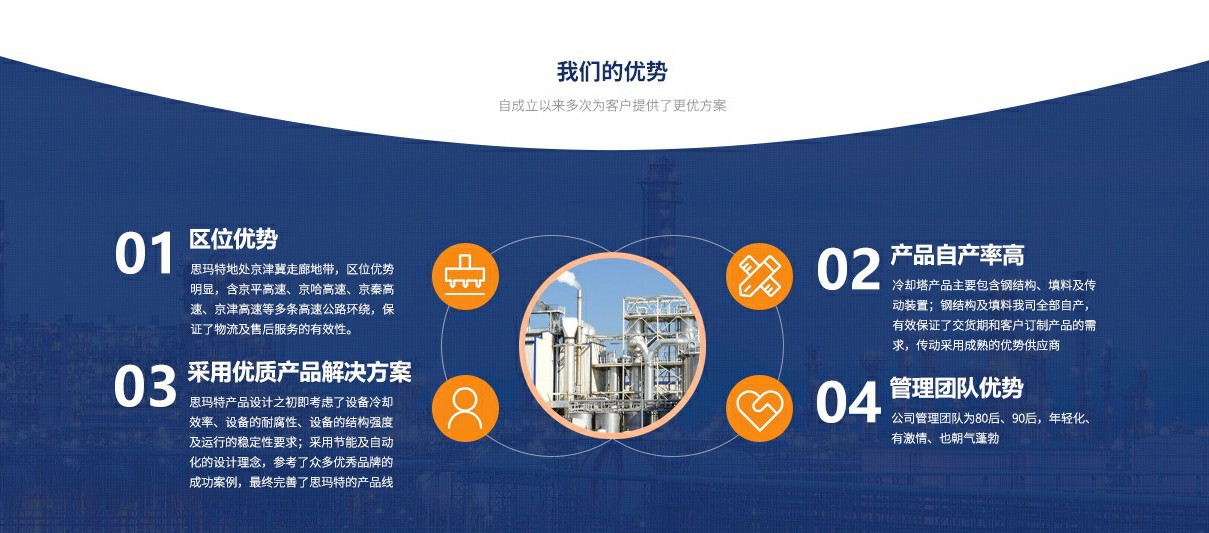 我們賦予了公司Smart(思瑪特)的品牌名稱(chēng),意在作為冷卻塔設(shè)備生產(chǎn)廠(chǎng)家,可以生產(chǎn)出智能化、高效率的蒸發(fā)式制冷設(shè)備產(chǎn)品并時(shí)刻根據(jù)市場(chǎng)的變化推出更具優(yōu)勢(shì)的產(chǎn)品服務(wù)于廣大客戶(hù)。
